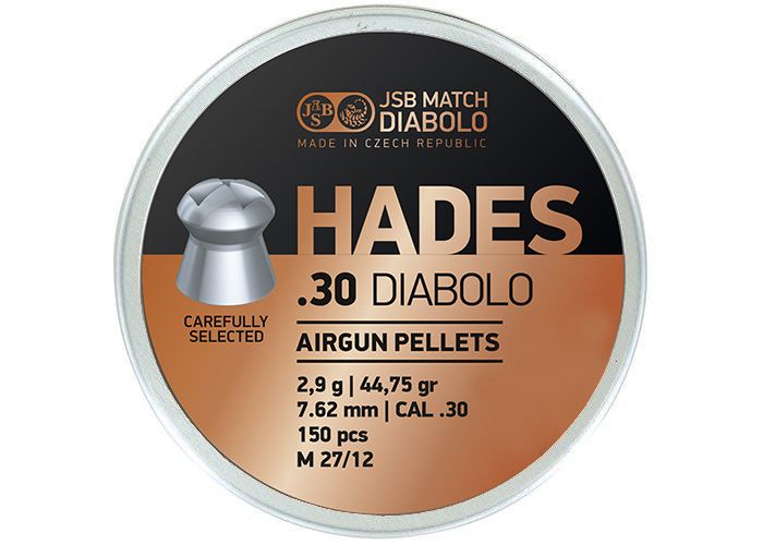 Estos perdigones JSB Hades de 7,62 mm y 44,75 granos están especialmente desarrollados para tener el impacto de punta hueca, pero después de eso se desintegran inmediatamente, impidiendo que los perdigones salgan cuando se usan para cazar.