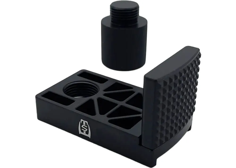 Puede obtener un poco más de estabilidad para su rifle con este tope de barricada suizo Saber Tactical Arca. El tope de la barricada está hecho de aluminio 6061 resistente a los impactos que está acabado con un revestimiento anodizado negro resistente a la corrosión. Cuenta con un moleteado agresivo en la cara delantera, por lo que el tope de barricada puede incrustarse un poco en lo que sea que lo presione. Esto evita que el rifle se mueva, por lo que tiene más estabilidad al apuntar.