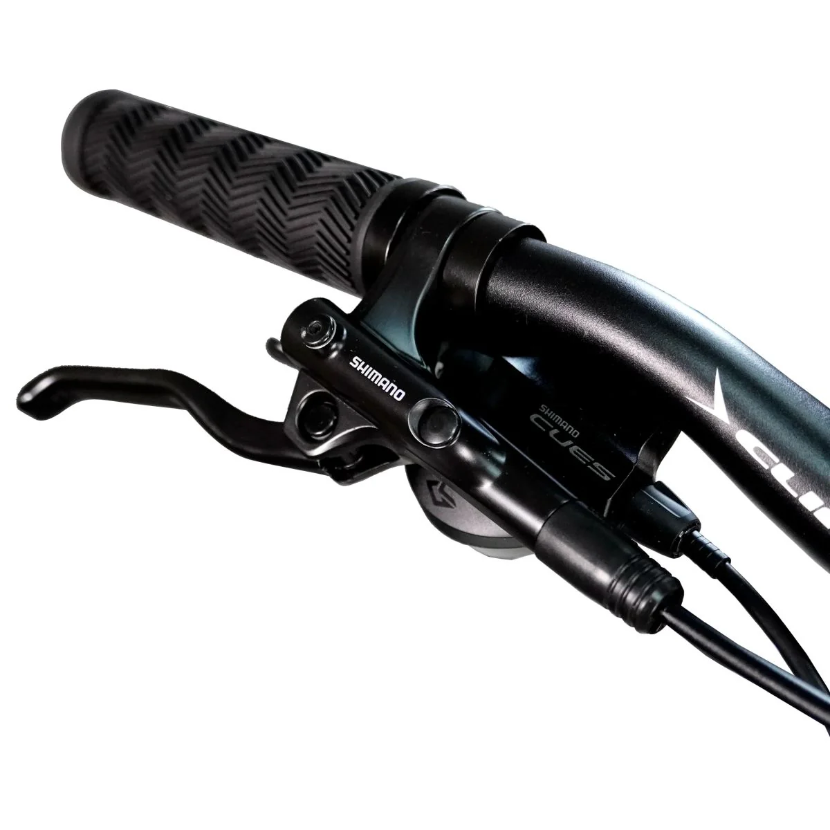 Equipada con un grupo **Shimano Cues de 10 velocidades**, esta bicicleta permite una exploración sin límites, gracias a su **pacha 11-40** que facilita las subidas y los descensos. La **suspensión delantera de resorte** con **80 mm de recorrido** absorbe los impactos para una conducción más cómoda y los **frenos de disco hidráulicos Shimano MT-200** garantizan una potencia de frenado superior y controlada, fundamental para la seguridad en terrenos difíciles.