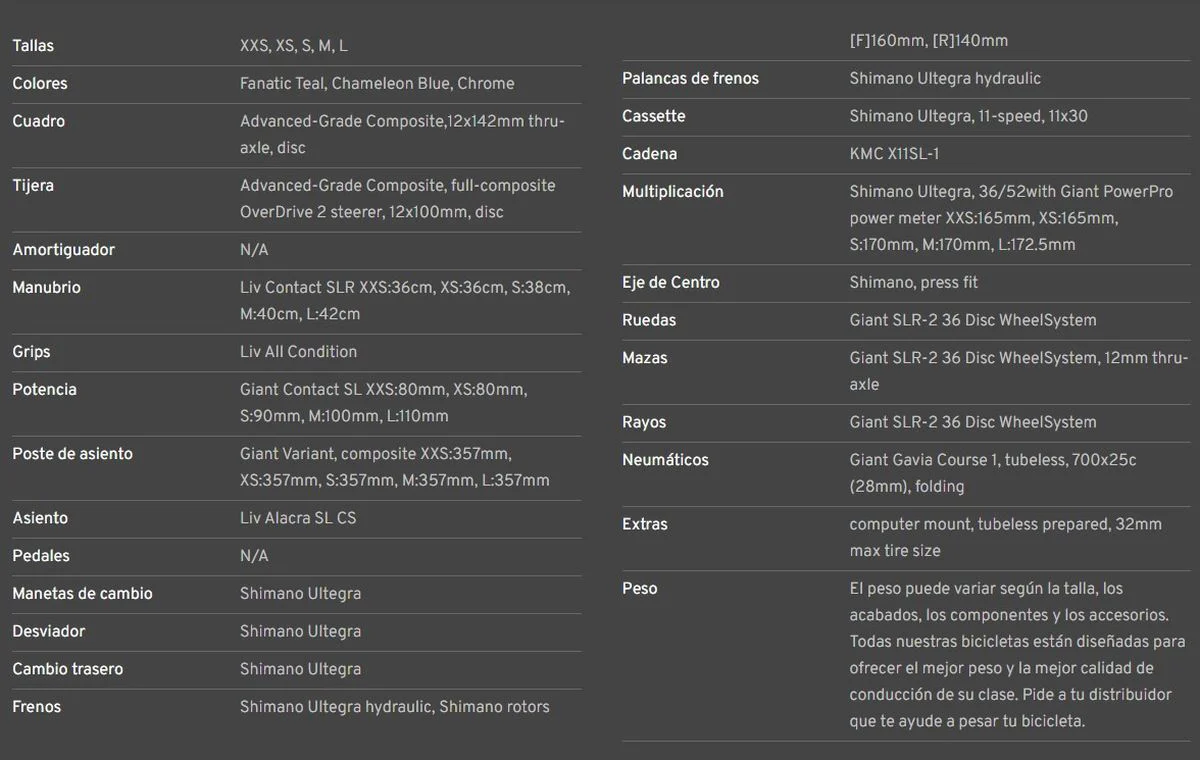 Escala cada montaña, aplasta cada sprint. La langma advanced pro disc cuenta con un cuadro aerodinámico ligero rediseñado y un nuevo sistema de ruedas de disco giant slr 36 con frenos de disco integrados y llantas sin gancho, además de sillín y manillar liv personalizados, para un rendimiento potente y listo para la carrera.