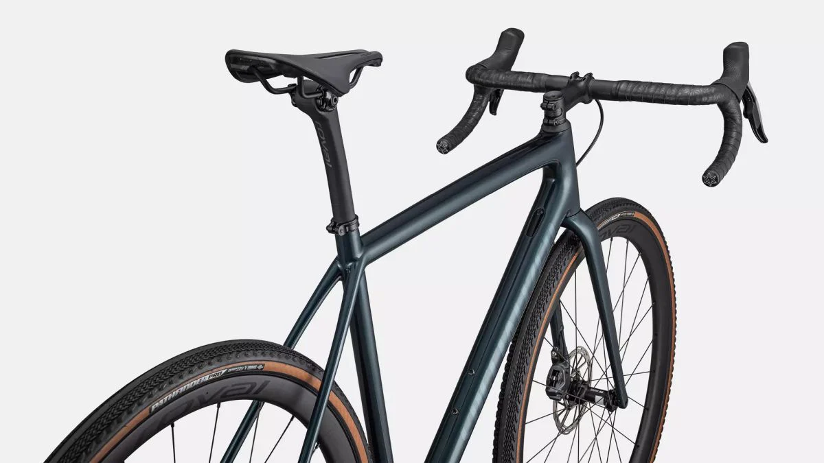 Esta Crux Pro está equipada con un grupo de discos hidráulicos SRAM Force1 eTap AXS de cambio rápido y preciso, ruedas Roval Terra CL Disc ligeras y duraderas, y neumáticos Pathfinder Pro 2Bliss Ready de 700×38 mm que agarran incluso en los terrenos más complicados.