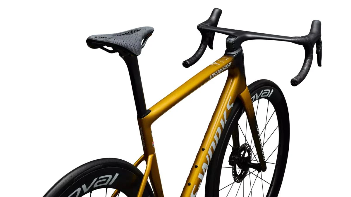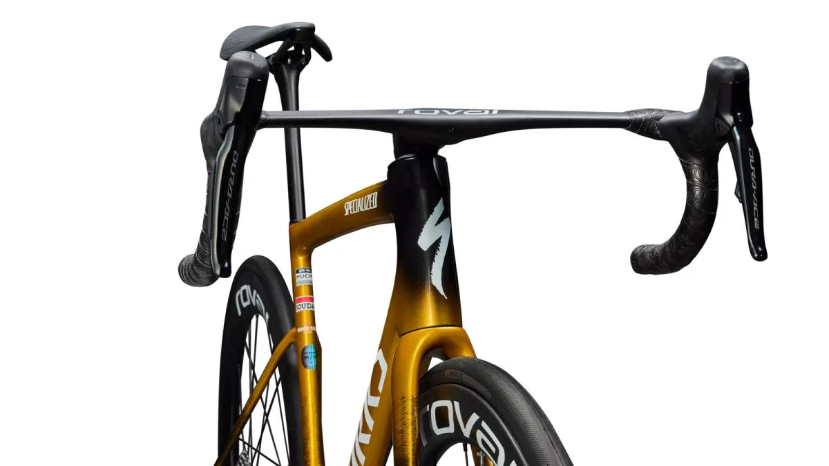 En 2024, mientras Specialized celebraba su 50º aniversario, Remco Evenepoel celebraba una temporada inolvidable que confirmó su título como el hombre más rápido del planeta. Para celebrar ese momento, rediseñamos su bicicleta S-Works Tarmac SL8 ‘Made in Racing’ y le dimos un acabado dorado espectacular, con los mismos componentes que usa el equipo en competición: cockpit Roval Rapide, ruedas Rapide CLX II, asiento S-Works Power Mirror. Solo Remco y otros 272 afortunados ciclistas podrán ser dueños de esta bicicleta de edición limitada. Realmente es la bici que domina a todas las demás.