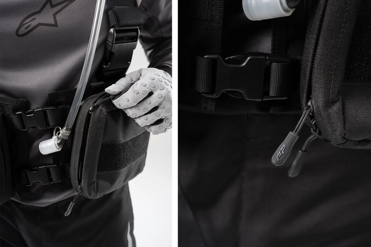 • Acceso Rápido: Cuenta con **bolsillos frontales de apertura rápida** y un arnés ajustable que mantiene todo su equipo firme y listo incluso en senderos técnicos.