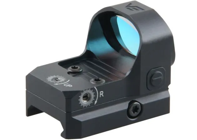 Una robusta carcasa fabricada en aluminio 6061-T6 de alta calidad ofrece protección contra daños y garantiza un conjunto robusto. El punto rojo tiene un punto de 3 MOA que se ilumina en diez niveles de brillo diferentes. De ellos, ocho son adecuados para su uso con luz diurna y dos para su uso con gafas de visión nocturna. Esta iluminación funciona con una batería CR2032.