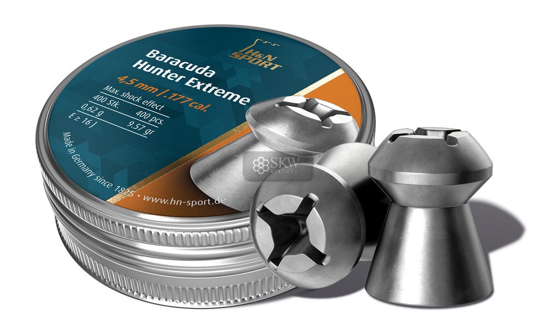 H&N Baracuda Hunter Extreme 5,5 (200): Balines de 5,5 mm con punta expandible, ideales para caza y tiro de largo alcance. Ofrecen gran poder de detención y precisión. Caja de 200 unidades.