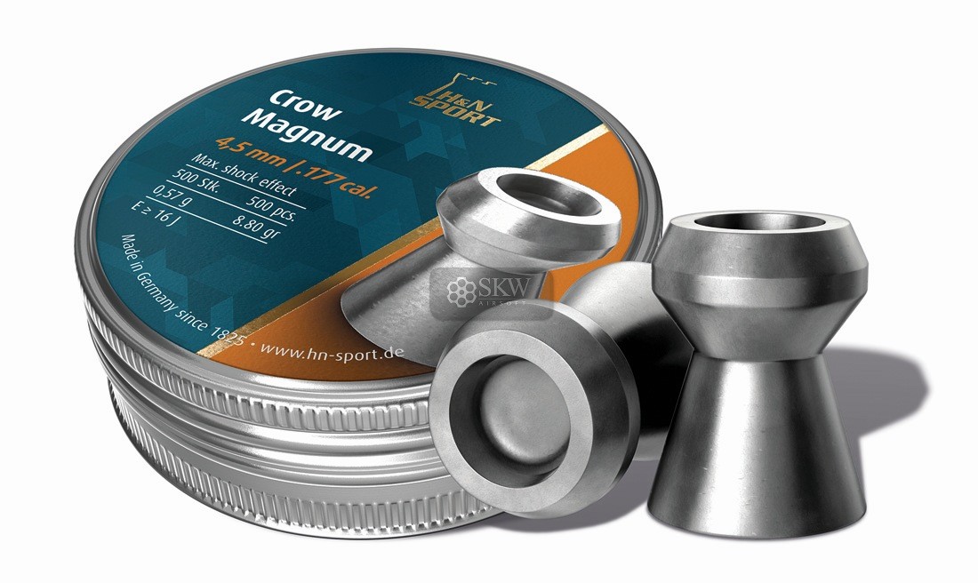 H&N Crow Magnum 5,5 (200): Balines de 5,5 mm con cabeza de expansión, ideales para máxima fuerza de impacto. Perfectos para caza y tiro de precisión. Caja de 200 unidades.
