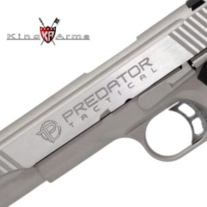 FEATURES: Special model, recommended for AIPSC. – The use of Green Gas is recommended. – Supports the use of Co2 chargers. – Total length 224 mm. – Interior length of the barrel 113.4mm. – Inner diameter of the barrel 6 mm. – Total height 148 mm. – Weight without charger 823g. – Main material aluminum die-casting alloy. Zinc alloy. – Magazine capacity 26 + 1 BBs. – 6mm caliber. – Marked Predator Tactical Iron Shrike. – Blowback. – Speed (standard version) 285 ~ 305FPS.
