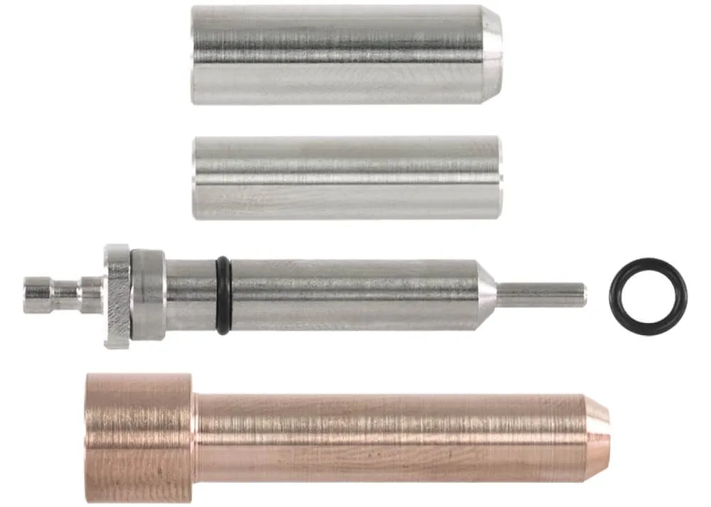 Este kit de alimentación de balas FX para rifles de aire Panthera/Dynamic/King/DRS consta de un martillo duradero hecho de tungsteno, una sonda de balas con dos juntas tóricas y dos fundas de calibre. Sin esas fundas de calibre, la sonda para balas es adecuada para balas de calibre 5,5 mm/.22. Al utilizar las fundas de calibre, puede convertir la sonda de balas para que se ajuste a balas de calibre 6,35 mm/.25 y balas de calibre 7,62 mm/.30. Las juntas tóricas le permiten asegurar las mangas alrededor de la sonda.