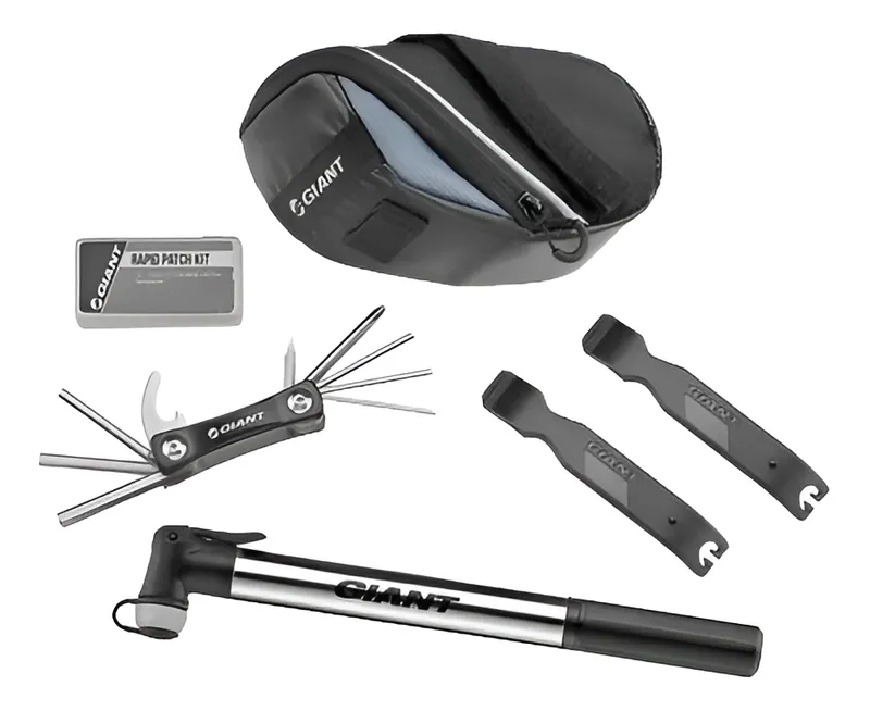 • Bolsa de Asiento Giant: Una bolsa práctica y discreta que se acopla fácilmente bajo tu sillín, manteniendo todo el contenido seguro y accesible.