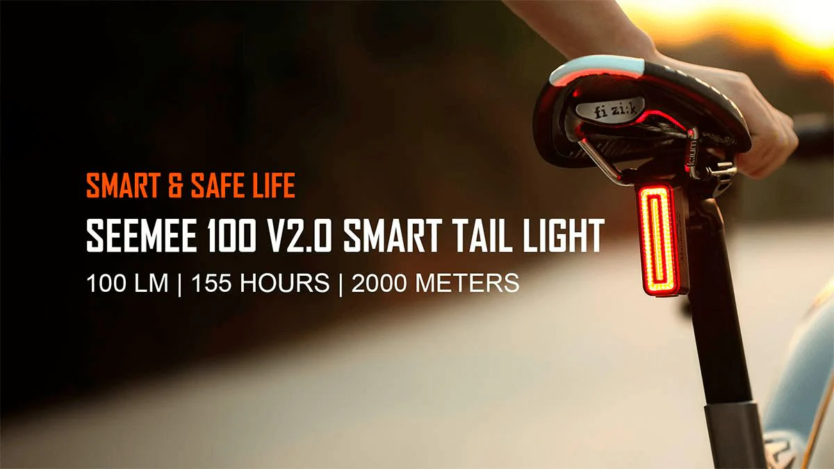 La Seemee 100 V2.0 es una luz trasera inteligente que incorpora sensores avanzados y potencia suficiente para tus recorridos, de día o de noche. Su tecnología óptica transparente ofrece un haz de luz con 260° de visibilidad y un brillo máximo de hasta 100 lúmenes para garantizar tu seguridad en todo momento.