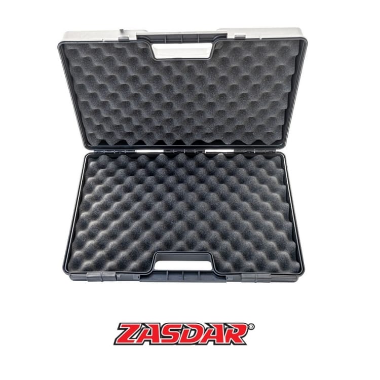 CARACTERISTICAS – An 480 x H 320 x P 80 mm. – Color negro. – 2 Cierres de corredera. – Espuma interior alveolada.