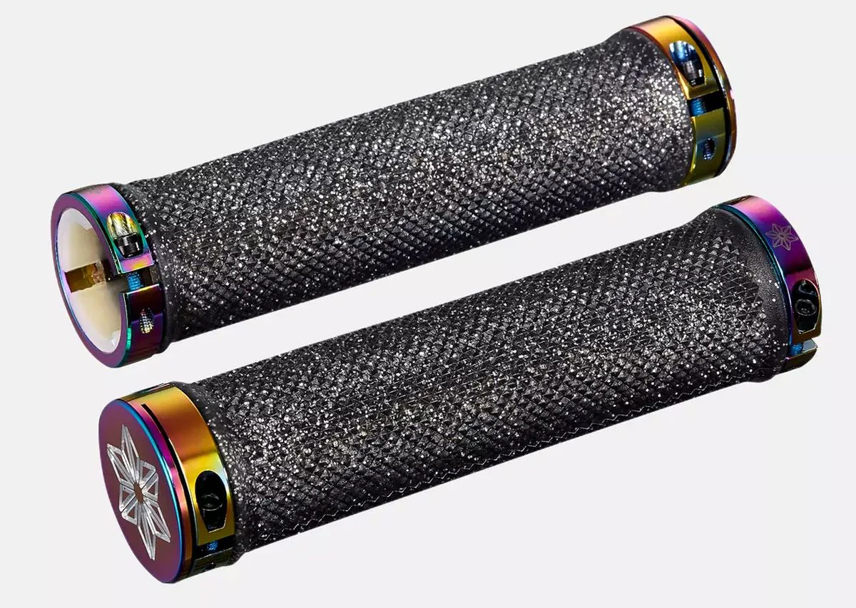 El dibujo de diamantes de los OG ofrece un control perfecto con la cantidad justa de sensibilidad para mantener tus manos cómodas. Los puños están terminados con abrazaderas de aluminio lisas tipo aceite. El agarre es único y es una necesidad absoluta para todo ciclista.