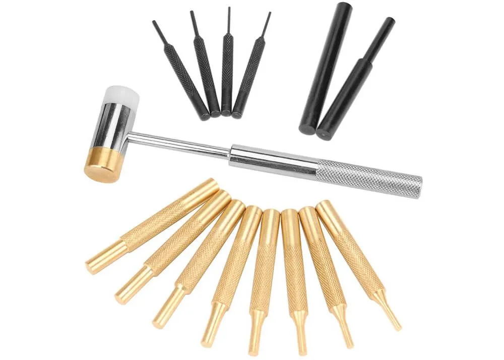 Un martillo y un punzón son herramientas esenciales en el kit de un armero o entusiasta de las armas de fuego. El martillo se utiliza para golpear con precisión y control, mientras que el punzón es útil para trabajar con pequeños pasadores y pernos, así como para quitar y reemplazar piezas. Juntos, estas herramientas permiten realizar una variedad de tareas de mantenimiento, reparación y ajuste en rifles, escopetas, pistolas y otras armas de fuego.