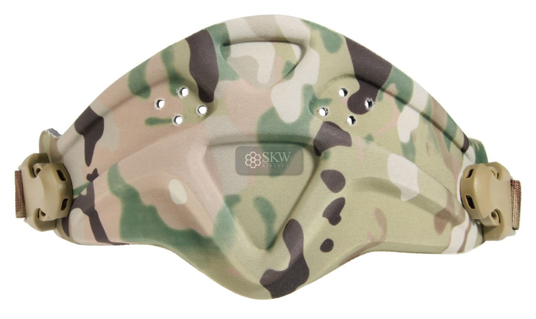 Máscara bucal con velcro Multicam: comodidad y seguridad con ajuste rápido y diseño táctico eficiente.