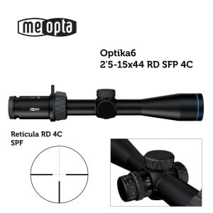 Optika6 2,5-15×44 SFP: Un verdadero visor de caza. El visor dispone de torretas con tapa para evitar ajustes no deseados cuando se mueve rápido a través de una cobertura pesada. Los ajustes de 0.25 MOA por clic se pueden restablecer a cero para que no haya conjeturas cuando necesite marcar en diferentes rangos en el campo. Con retículas en el segundo plano focal (SFP), el Optika6 2.5-15×44 está disponible en numerosas opciones de retícula estándar, iluminada y DichroTech y viene de serie con una palanca de tiro de anillo de potencia de múltiples posiciones. El ajuste de paralaje de enfoque lateral permite al tirador enfocar con precisión para tiros de largo alcance, por lo que no hay duda de que apuntas es donde golpeas. CARACTERÍSTICAS: – Garantía de 10 años. – Waterproof. – RD: Retícula iluminada tipo 4C – Ampliación: 2,5 – 15 x – Lente objetivo: 44 mm – Hilo de filtro de objetivo: M48x0,75 – Tamaño del tubo principal: 30 mm – Diámetro de salida de la pupila: 11 – 2,9 mm – Distancia ojo/ocular (mm / in): 100 / 3.94 – Campo de visión (m / 100m // ft / 100yds): 13,3-2,3 // 39,9-6,9 – Campo de visión: 7,6 – 1,3 ° – Posición del plano focal: 2 – Compensación dióptrica: -2,5 / 3,5 D – Transmisión de luz diurna: 91% – Transmisión crepuscular: 88% – Factor crepuscular: 10,5 – 25,7 – Impacto por clic (cm / 100 m // in / 100yds): 0,7 // 0,26 – Rango de ajuste de elevación y viento (cm / 100 m // in / 100yds): 204 // 73,3 – Corrección de paralaje: 10 yd – infinito y / n – Longitud (mm / pulg): 359 / 14,11 – Peso (g / oz): 772 / 27,3 – Relleno con Nitrógeno. – MeoBright 5501: Multi-revestimiento patentado de lente asistida por iones aplicado a todas las superficies ópticas. Desarrollado por Meopta, los revestimientos múltiples asistidos por ionización MeoBrightTM eliminan el deslumbramiento y las reflexiones y proporcionan una transmisión de luz líder del sector de 99,7% por superficie de lente. – MeoShield TM: El recubrimiento asistido por ionización MeoShield TM protege las superficies externas de las lentes y ofrece una mayor resistencia al rascado o la abrasión en condiciones extremas. MeoShieldTM cumple con especificaciones militares de durabilidad y dureza de la superficie.
