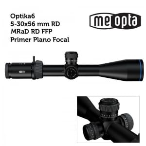 Optika6 5-30×56 FFP El Optika6 5-30×56 pone el listón alto para la competencia y la óptica de precisión de largo alcance. Con 2 elementos de cristal ED en el objetivo, el 5-30×56 proporciona lo último en claridad y resolución de borde a borde sin importar la distancia. El gran tubo principal de 34 mm proporciona un amplio rango de ajuste de elevación y resistencia al viento, lo que permite al tirador corregir fácilmente las condiciones cambiantes del campo. Todas las opciones 5-30×56 cuentan con retículas FFP con resistencia al viento expuesta y elevación de parada cero que se pueden restablecer a cero, así como ajuste de paralaje lateral para una colocación precisa de tiros de largo alcance. Las opciones de retícula incluyen una retícula de «árbol» patentada basada en MIL que proporcionará una orientación precisa en todo el rango de potencia y permitirá una retención de precisión excelente en el campo. CARACTERÍSTICAS: – Ampliación: 5-30 x – Lente objetivo: 56 mm – Hilo de filtro de objetivo: M61x0,75 – Tamaño del tubo principal: 34 mm – Diámetro de la pupila de salida: 9,5 – 1,9 mm – Alivio del ojo (mm / in): 100 // 3.94 – Campo de visión (m / 100m // ft / 100yds): 8.2-1.2 // 24.6-3.6 – Campo de visión: 4,7 – 0,7 ° – Posición del plano focal: 1 – Compensación dióptrica: -2 / 2 D – Transmisión de luz diurna: 91% – Transmisión crepuscular: 88% – Factor crepuscular: 16,7 – 41 – Impacto por clic (cm / 100m // in / 100yds): 1 // 0.36 – Rango de ajuste de elevación y viento (cm / 100 m // in / 100yds): 320 // 115,2 – Corrección de paralaje: 25 yardas – infinito – Longitud (mm / pulg): 392 / 15,44 – Peso (g / oz): 1039 / 36,7 MeoBright 5501 – Un recubrimiento múltiple de lentes asistido por iones patentado aplicado a todas las superficies ópticas de aire a vidrio. Desarrollado por Meopta, los revestimientos múltiples asistidos por iones MeoBright 5501 eliminan el deslumbramiento y los reflejos y ofrecen una transmisión de luz del 99.8% por superficie de lente líder en la industria. MeoShield – El recubrimiento asistido por ionización MeoShield TM protege las superficies externas de las lentes y ofrece una mayor resistencia al rascado o la abrasión en condiciones extremas. MeoShieldTM cumple con especificaciones militares de durabilidad y dureza de la superficie. Sistema de retícula iluminada RD – Los visores equipados con RD cuentan con una retícula de punto rojo iluminado altamente definido. Un tercer controlador de torreta permite al usuario elegir entre ocho configuraciones de intensidad de retícula para condiciones de luz extremadamente baja o muy brillante. Las posiciones de apagado intermedias entre cada configuración permiten al usuario encontrar rápidamente su configuración de iluminación preferida.