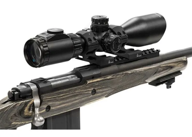 El UTG Accu-Sync 30 mm de alto 37 mm Offset Weaver/Picatinny es un soporte de dos piezas construido para rieles Weaver/Picatinny y el desplazamiento de 37 mm le permite montar ópticas de 37 mm hacia adelante o hacia atrás.