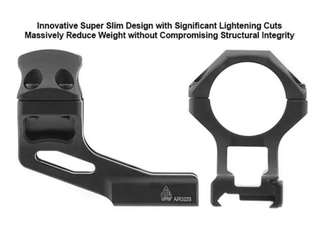 Esta montura UTG Accu-Sync de 30 mm de alto y 37 mm Offset Weaver/Picatinny está hecha de una capa exterior anodizada para un exterior mate resistente a la corrosión. Los huecos mecanizados reducen significativamente el peso pero se mantiene la integridad estructural. Los bordes suavizados evitan daños a la ropa y otras partes de su configuración. Además de esto, los anillos interiores presentan una textura fina que aumenta el poder de sujeción de los visores.