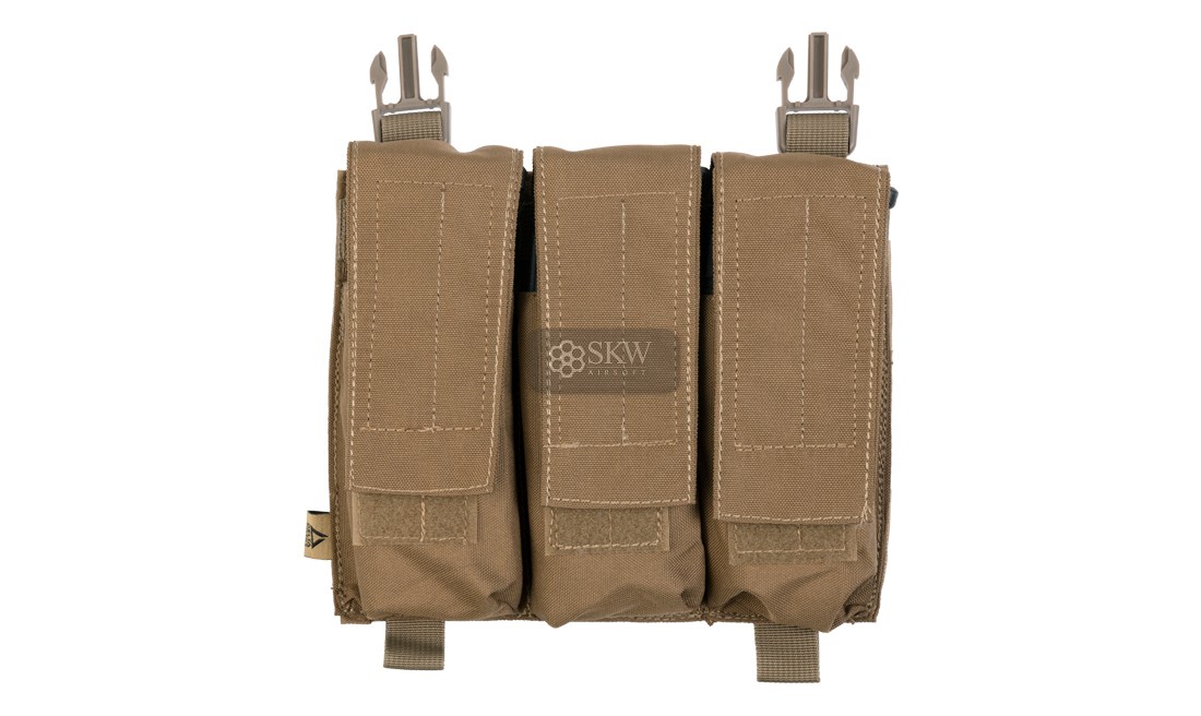 Panel frontal preconfigurado de Delta Tactics con clips machos con 3 pouches con solapa superior para 3 cargadores de tipo AR, G36, AK…