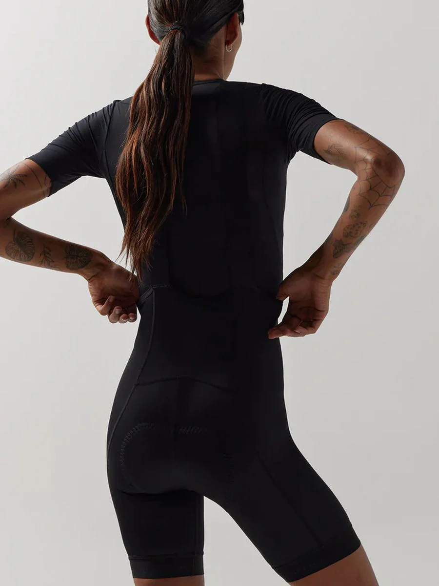 La pantaloneta Essntls ofrece un nivel de compresión moderado-alto. Esta pantaloneta se ajusta al tallaje real y está clasificada como European slim fit, lo que garantiza un ajuste ceñido y aerodinámico para las ciclistas que buscan lo esencial a la hora de montar.