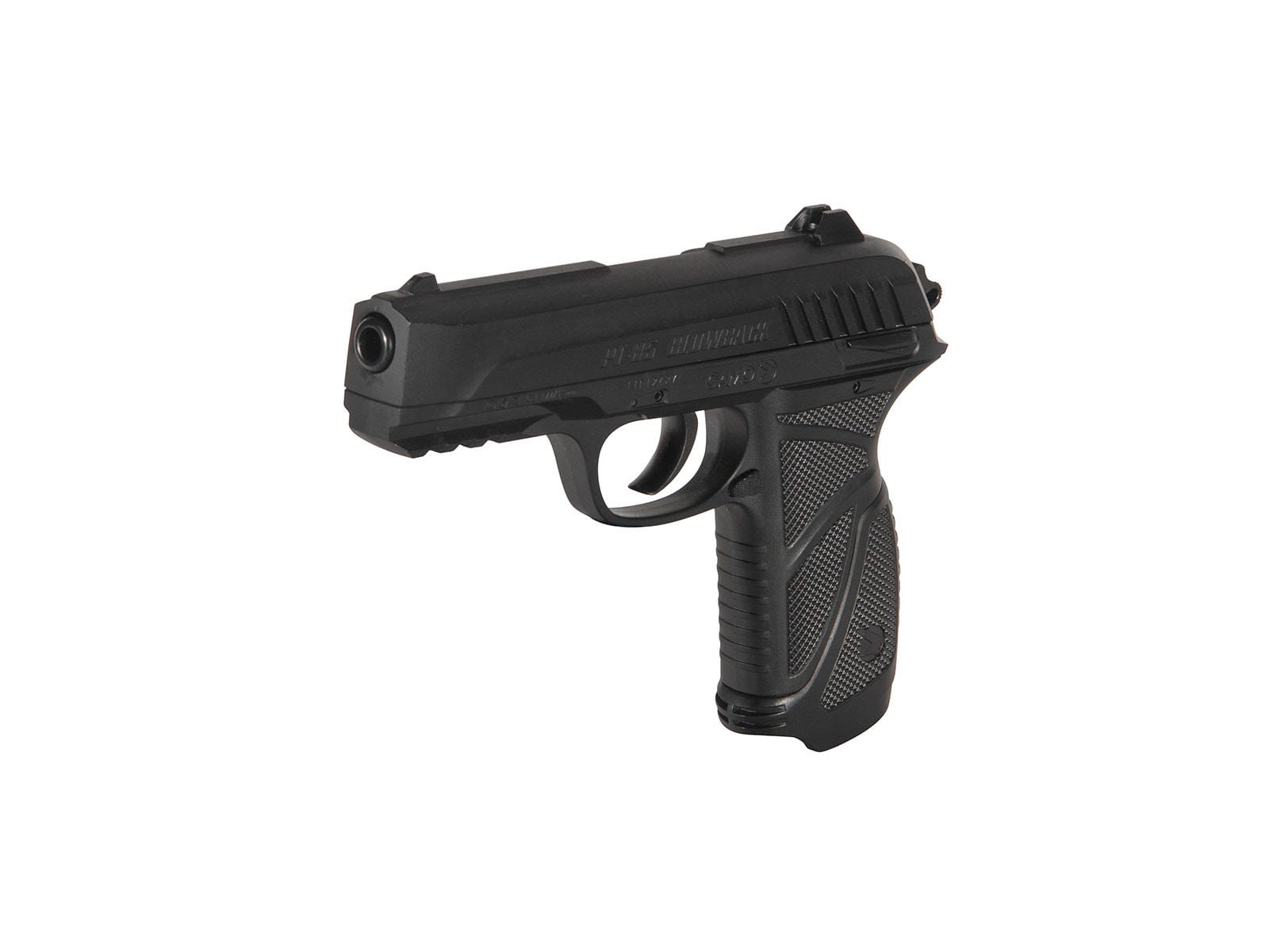 La pistola Gamo de aire comprimido PT-85 Blowback de C02 es uno de los grandes éxitos de ventas de Gamo a nivel mundial, una pistola semiautomática de lo más realista con su sistema de corredera móvil “blowback”, disparar con la PT-85 es una auténtica pasada y transmite muy buenas sensaciones conseguidas por el movimiento de la corredera y el sistema de disparador de simple o doble acción. Una pistola que funciona con botellas de 12gramos de CO2 y dispone de un curioso cargador doble reversible que sostiene un tambor con 8 disparos a cada lado con un total de 8+8=16 disparos. La precisión de esta pistola es admirable gracias a su cañón estriado el cual puede disparar balines de plomo. Cuerpo y empuñadura de polímero acabado negro mate, corredera metálica, seguro manual y un práctico Raíl picatinny táctico frontal. Gamo PT-85 Blowback una pistola de C02 con peso y medidas estándar con la que disfrutará toda la familia!