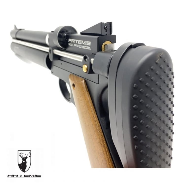CARACTERISTICAS: – Regulador integrado 100bar. – Depósito de 66 cc. a 220 bares. – Cargador monotiro. – Cargador multitiro 9 balines. – Velocidad aprox.: 750fps – 230m/s 14 julios (aprox). – Cañón de acero estriado de 200 mm de longitud. – Empuñadura de madera. – Accionada por cerrojo manual. – Seguro manual en el disparador. – Peso: 1470 gramos. – L410 x A35 x H157 mm – Alza regulable micrométrica y punto de mira. – Gatillo ajustable. – Raíl de 11 mm para accesorios ópticos. – Con apoyo delantero desplazable. – Culata extensible y desmontable. – sonda de carga con conector rápido tiopo Foster.