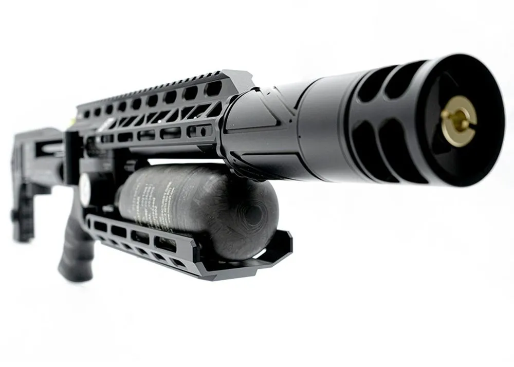 Este riel accesorio Arca Swiss 3 Compact de Saber Tactical es adecuado para el FX Impact y reemplaza el guardamonte original para servir como protección para el cilindro de aire y para más opciones de fijación de accesorios.