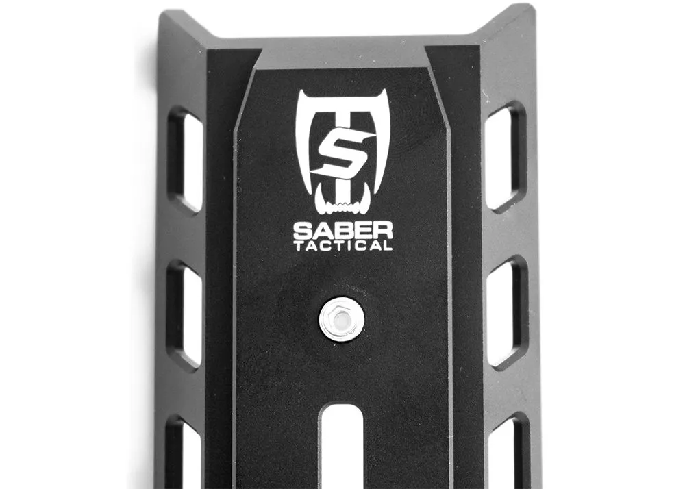 El riel accesorio completo Saber Tactical FX Impact Low Profile Arca Swiss 3 está hecho de aluminio 6061 T6 con una capa anodizada negra para protección contra la corrosión y el desgaste.