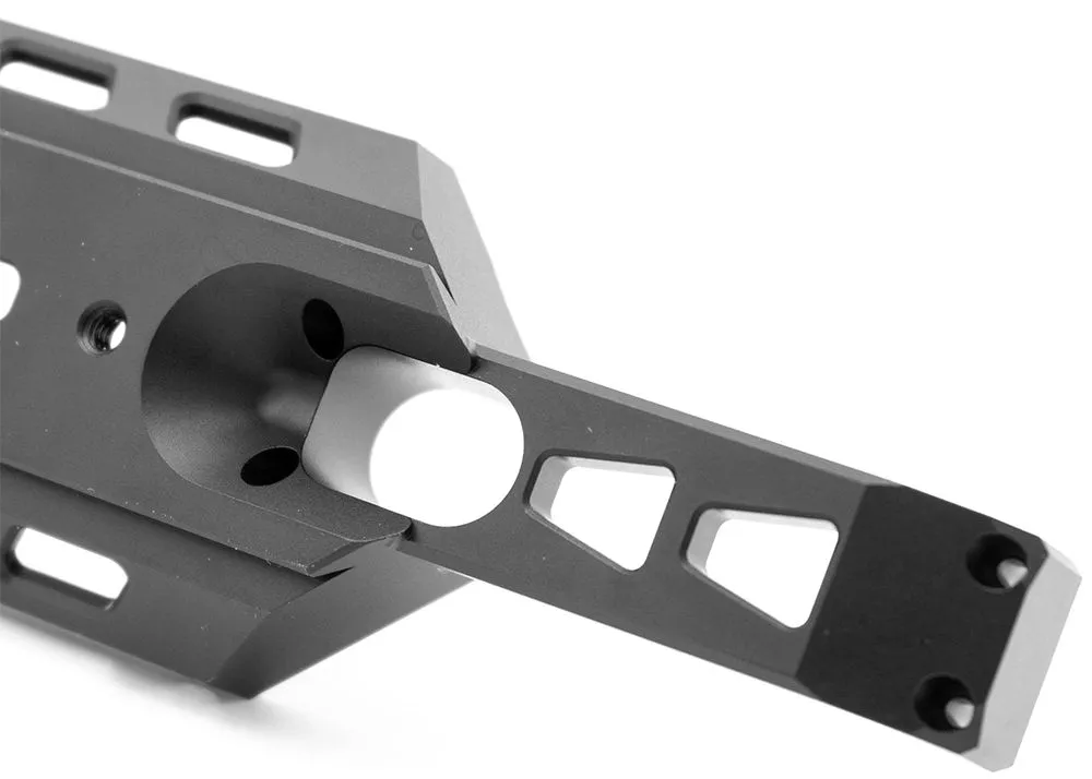 Este riel accesorio completo Arca Swiss 3 de perfil bajo de Saber Tactical es adecuado para el FX Impact y reemplaza el guardamonte original para servir como un riel adicional para más opciones de fijación de accesorios y protección para el cilindro de aire.