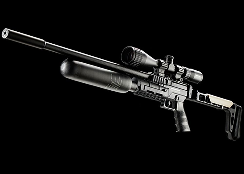 La Snowpeak AP1000B Mercury CFB es una carabina de aire comprimido PCP ligera con culata plegable y depósito de fibra de carbono. Esto la hace compacta de transportar y cómoda de transportar durante períodos prolongados, además de proporcionar mayor capacidad de cilindros.