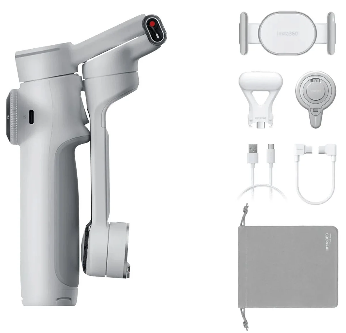 Incluye 1x Insta360 Flow 2 Pro, 1x abrazadera magnética para teléfono, 1x cable de carga USB-C a USB-A y 1x bolsa protectora.