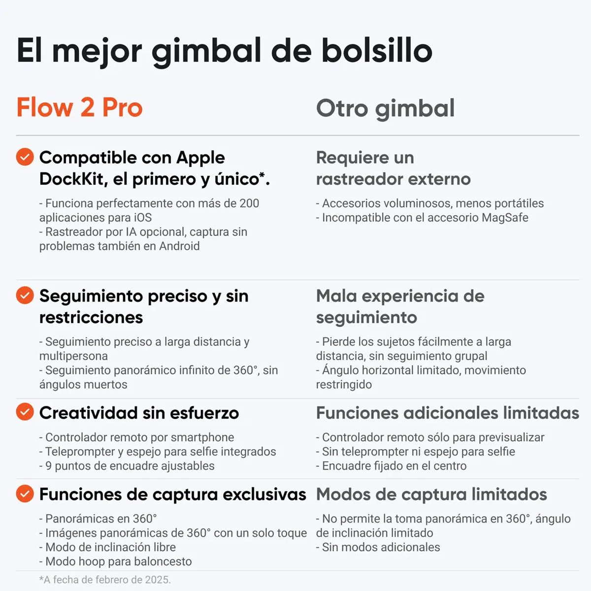 Seguimiento versátil en más de 200 aplicaciones iOS: la primera y única serie de cardán con Apple DockKit*.Un estabilizador de cardán avanzado para iPhone y la herramienta definitiva para creación de contenido, videollamadas, reuniones en línea, transmisiones en vivo y más con más de 200 aplicaciones iOS compatibles.