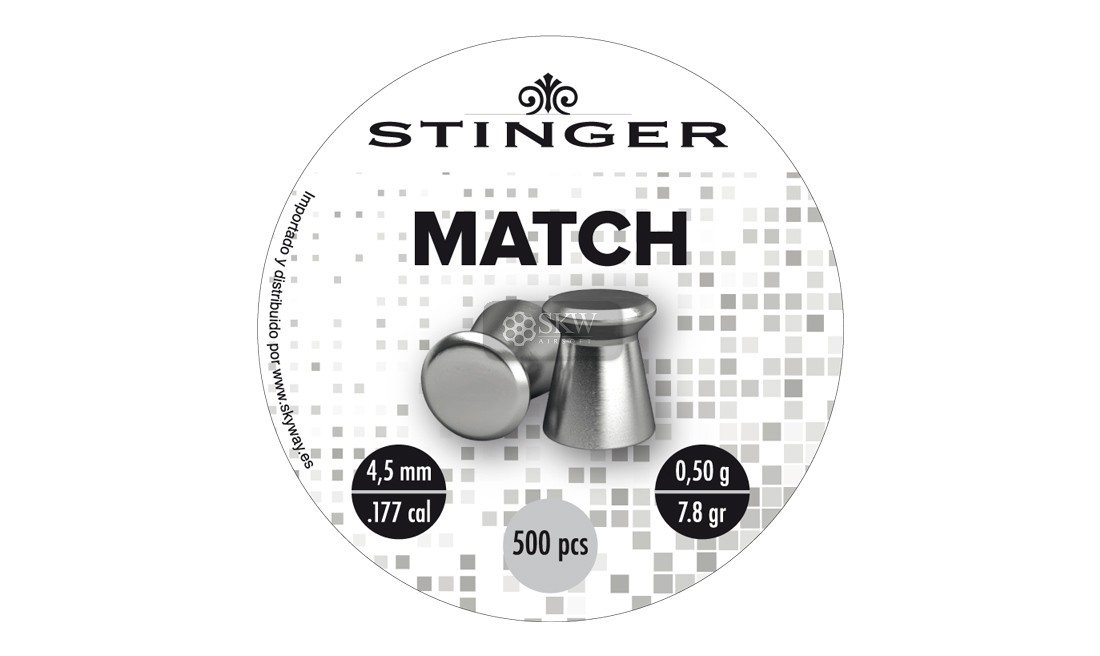 Stinger Match 4.5 (500): Balines de precisión calibre 4.5 mm, optimizados para competiciones y entrenamientos avanzados. Garantizan máxima estabilidad, trayectoria recta y gran impacto en cada disparo. Perfectos para tiradores que buscan excelencia.