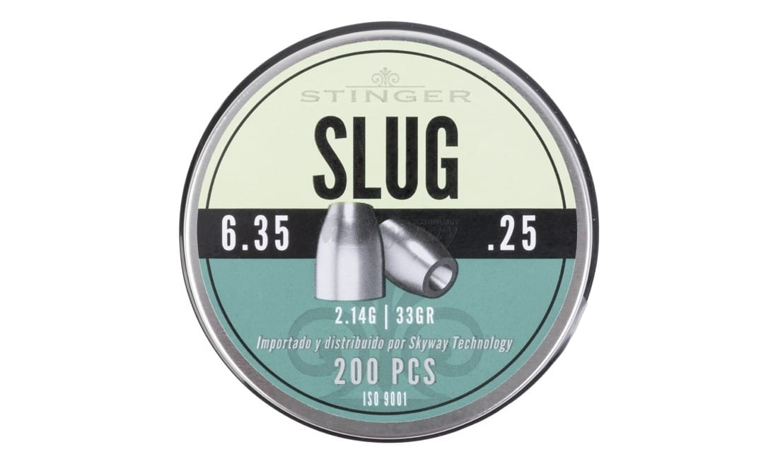 STINGER SLUG 6.35 mm, 200 uds. Diseñados para caza mayor y tiro de precisión, ofrecen un excepcional poder de penetración y estabilidad. Fabricados en plomo, aseguran un impacto potente y un vuelo controlado.