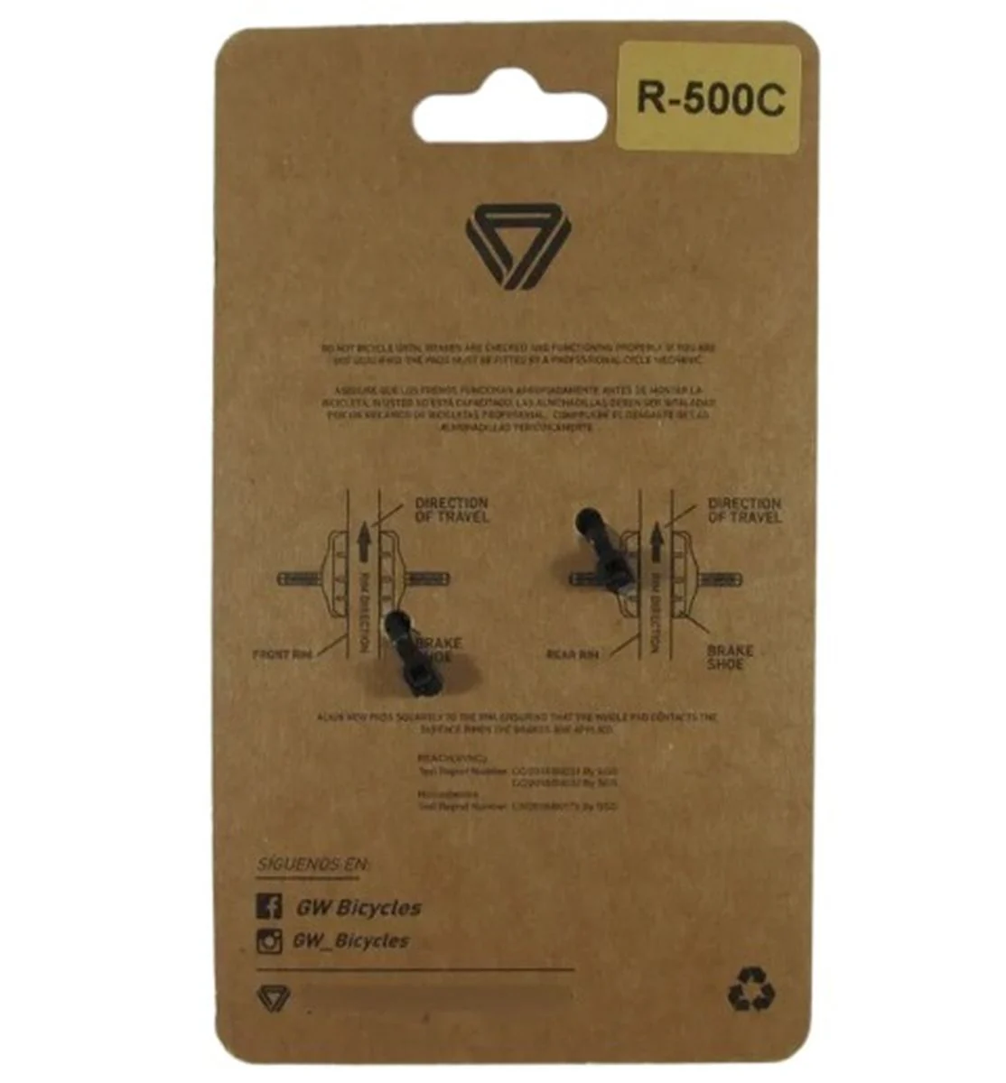 En Cyclewear, tu tienda de ciclismo en Sabaneta, Antioquia, te ofrecemos los Tacos GW Zapatas Ruta R-500C 1 Par 55mm Azul (Referencia: R-500C), una opción confiable para optimizar el frenado de tu bicicleta de ruta. Con su diseño de riel negro y zapata azul, estos tacos de 55mm están pensados para ofrecer un rendimiento eficaz y duradero.