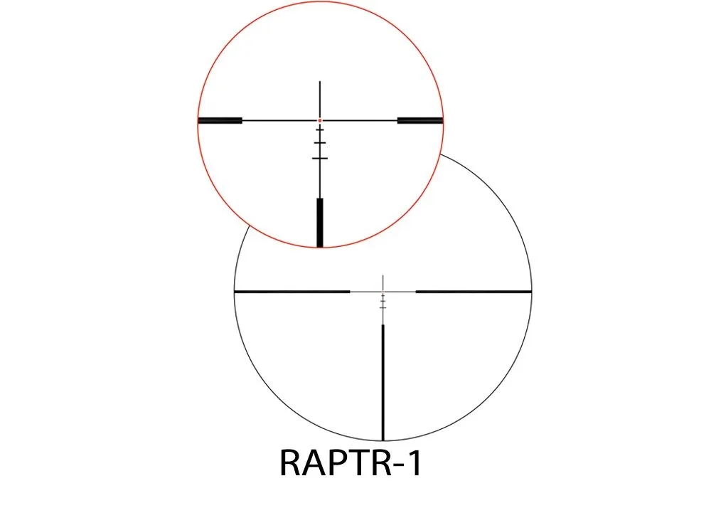 • Retícula RAPTR-1 (BDC) con un punto central iluminado, las subtensiones están calibradas con un aumento de