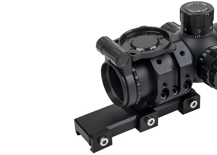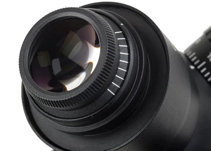Además del ocular de enfoque rápido, el paralaje se puede ajustar con una torreta en el lado izquierdo para evitar errores de paralaje y estimar distancias de los objetivos. El enfoque se puede realizar desde 6 metros en adelante, lo cual es bueno para rifles de aire comprimido y distancias cortas, y el centro de la retícula se puede iluminar en 10 niveles de brillo en rojo. Esta mira telescópica también es impermeable, a prueba de golpes y está purgada con nitrógeno para mantener la humedad alejada.