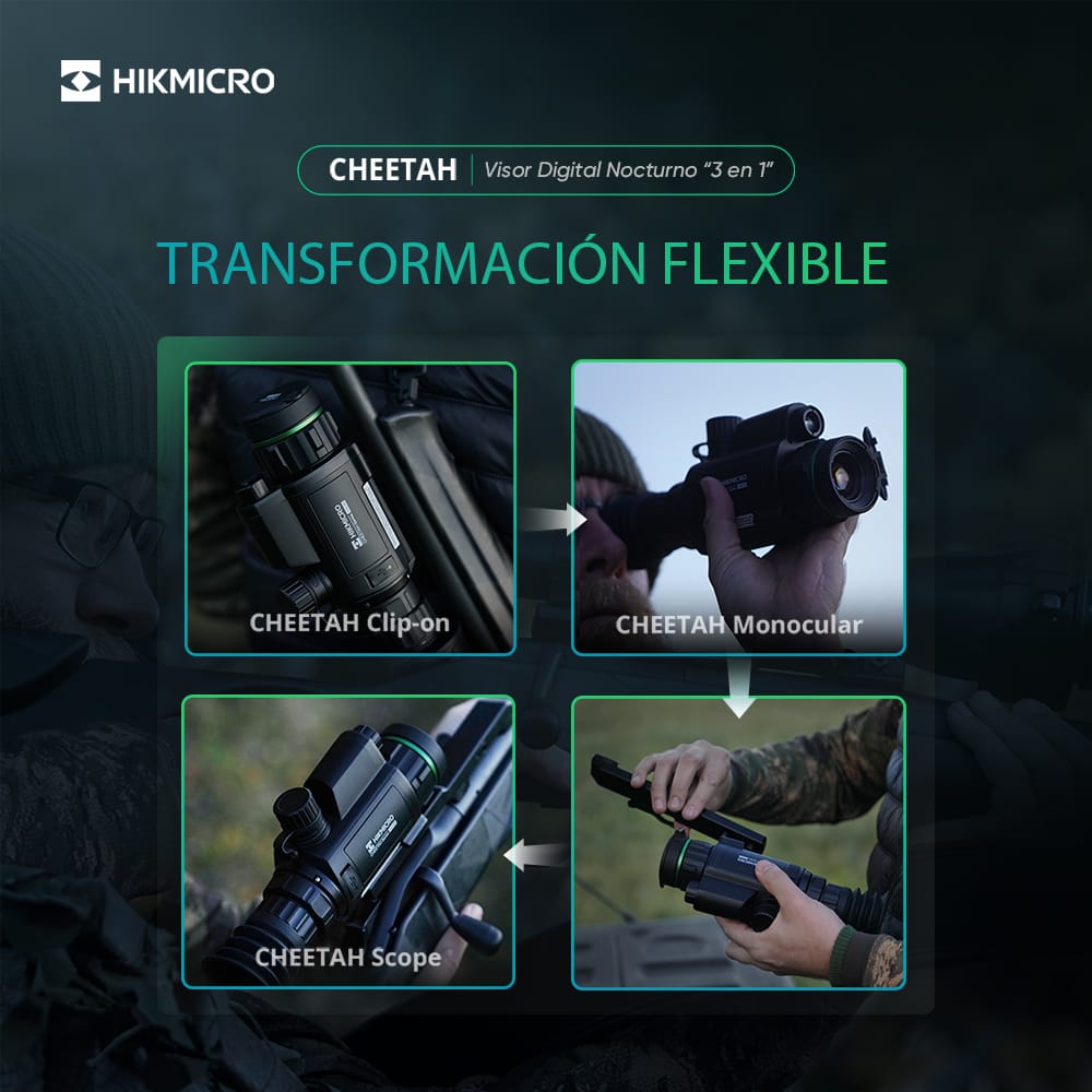 La versión monocular/visor del visor digital nocturno y diurno «3 en 1» Cheetah C32F-S trae incluido el ocular de goma. Este dispositivo digital de visión nocturna también incorpora un emisor IR de 850 nm, un sensor HD avanzado de 2560 × 1440 y una pantalla OLED de 1920 × 1080 que son capaces de capturar cada objeto con gran detalle y gran claridad.